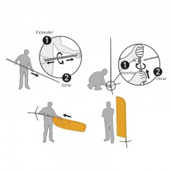 • Embalaje de reducidas dimensiones para mástil, base y bandera. Un sólo paquete para una distribución más sencilla y económica.