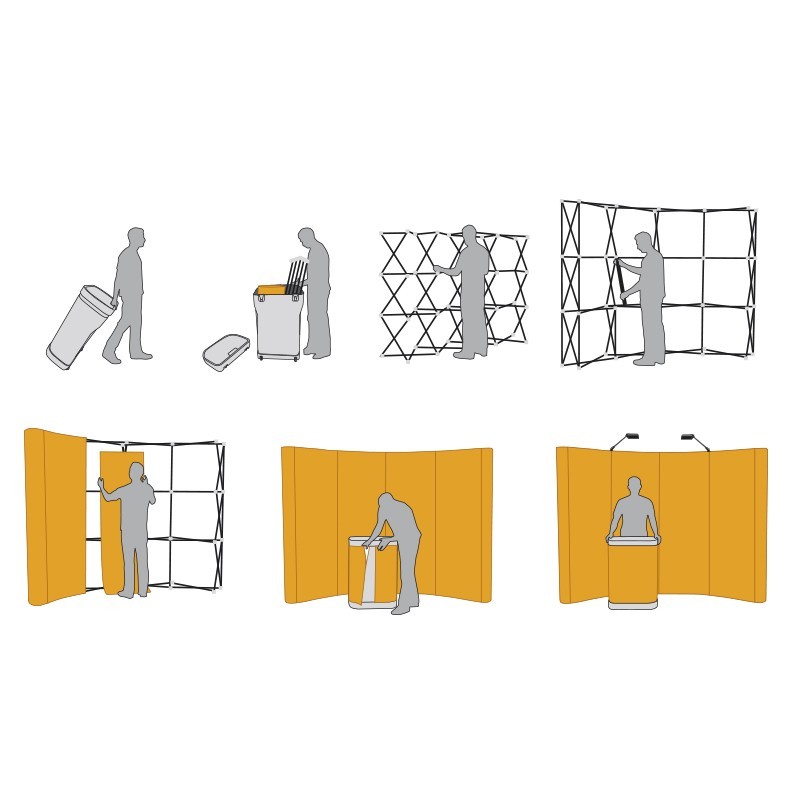 El sistema ha sido diseñado para poder ser fácilmente reconfigurado. Tú mismo podrás unir estructuras, modificar tamaños y combinar formas para conseguir todo tipo de murales y stands de gran impacto.